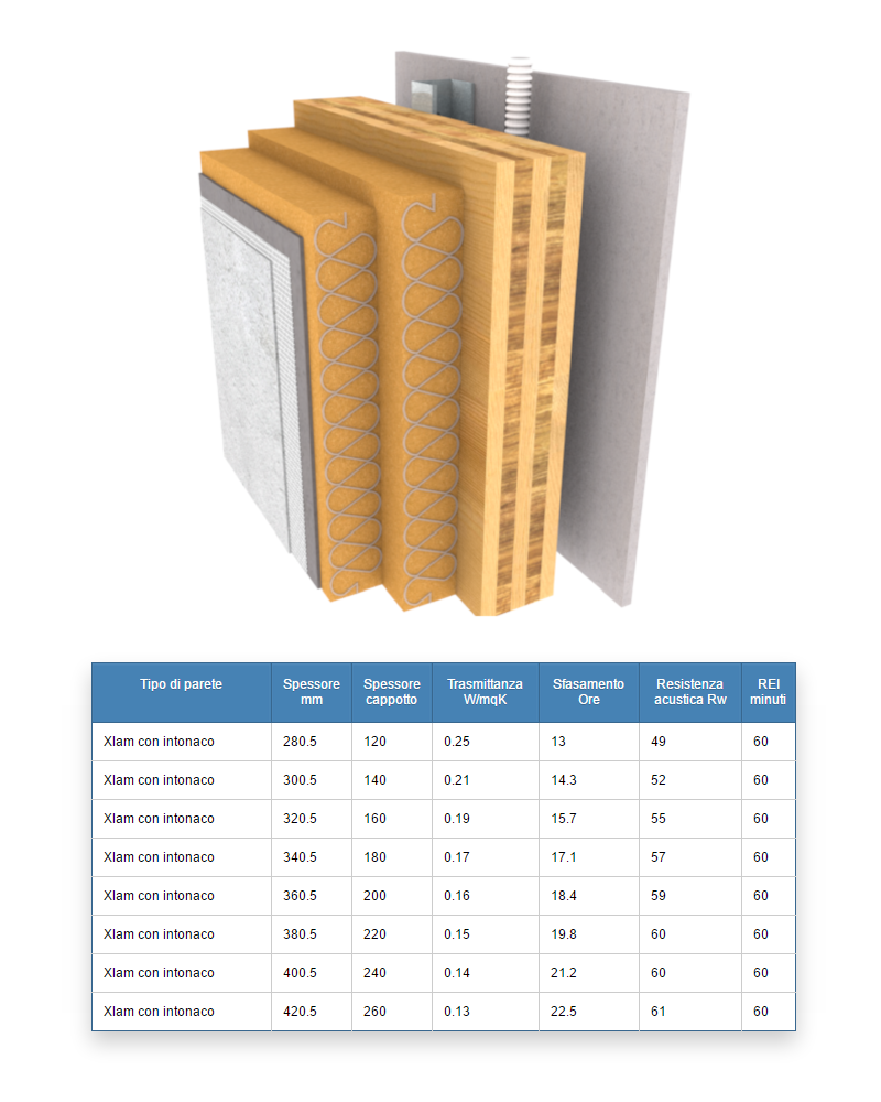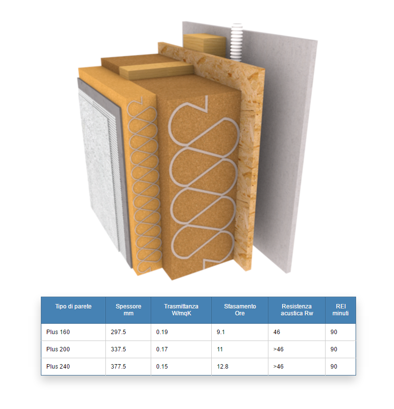 La parete esterna Monolite in legno lamellare massiccio, viene prodotta con tecnologia a controllo numerico in tutte le sue fasi (essiccazione, incollaggio, piallatura, ecc.), isolata a cappotto con isolanti naturali o di sintesi (fibra di legno, lana di roccia o EPS ) e rifinita con facciate in intonaco o legno. E’ costituita da un unico blocco compatto e solido di tavole d’abete incollate, senza fughe. Lo strato lamellare ha uno spessore di quattro centimetri per tavola . Queste pareti garantiscono la salubrità dell’ambiente che delimitano, poiché eliminano problemi fisici come condense o ponti termici.