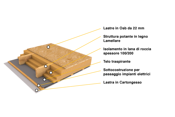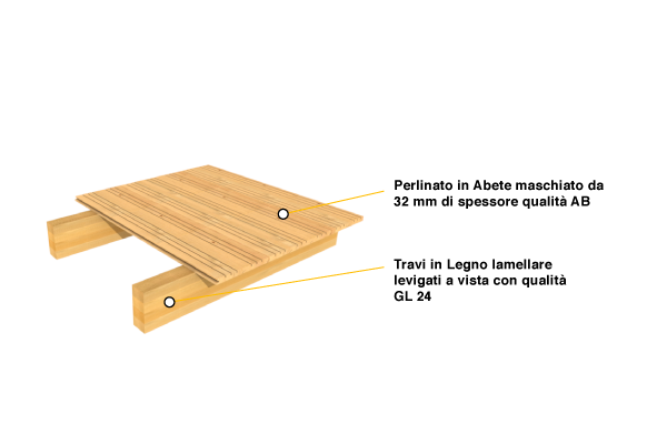E’ realizzato con pannelli in legno lamellare che hanno qualità a vista ed un elevato effetto estetico. I panelli vengono collocati sopra le pareti o sugli elementi portanti. Lo spessore dei pannelli può variare dai 100 fino ai 160 mm in funzione delle luci; la larghezza massima è di 1250 mm.